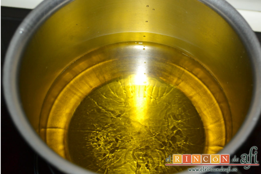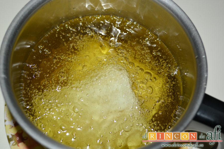 • El siguiente paso es calentar el aceite de oliva en un cazo hasta que esté bien caliente...