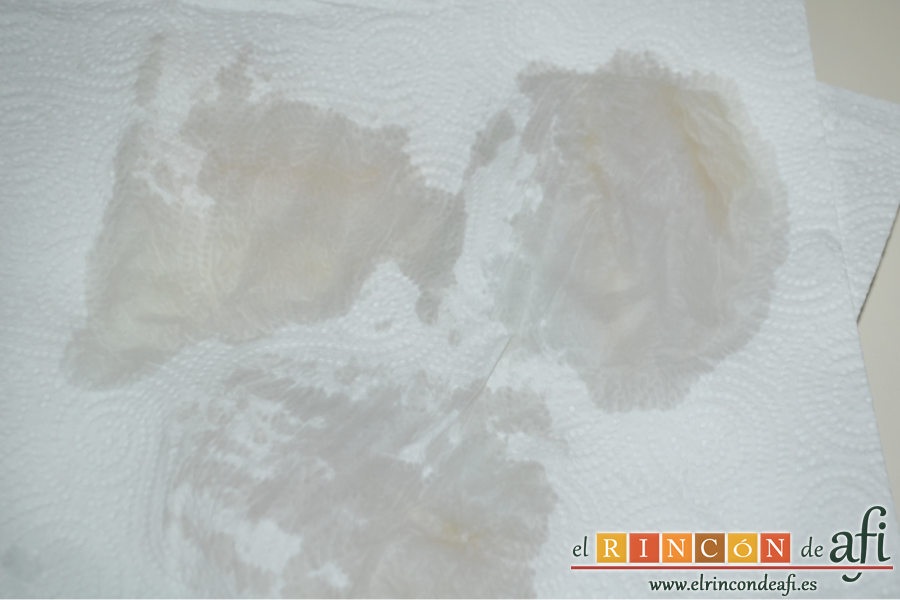 • Hacemos igual colocando papel de cocina encima del bacalao, presionándolo bien para que quede bien seco.