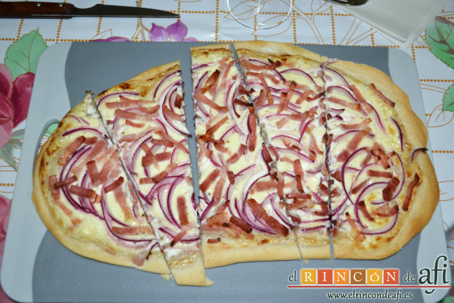 - Tu Flammkuchen o Tarta Flambée está lista para comer.