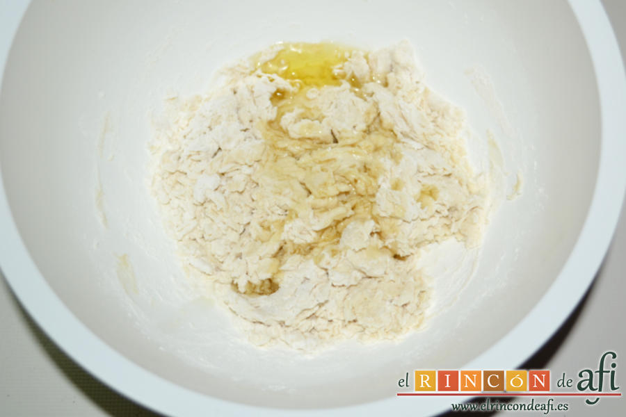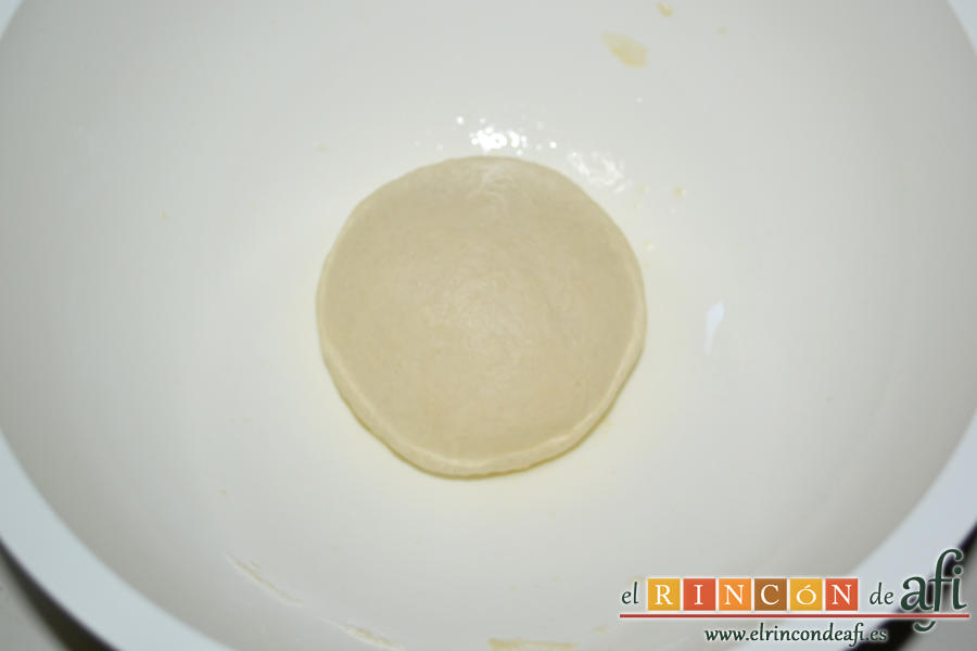- ...y amasamos, manualmente o con amasadora a media velocidad durante dos o tres minutos hasta tener una masa suave y elástica que dejamos reposando en el bol engrasado durante unos diez minutos.