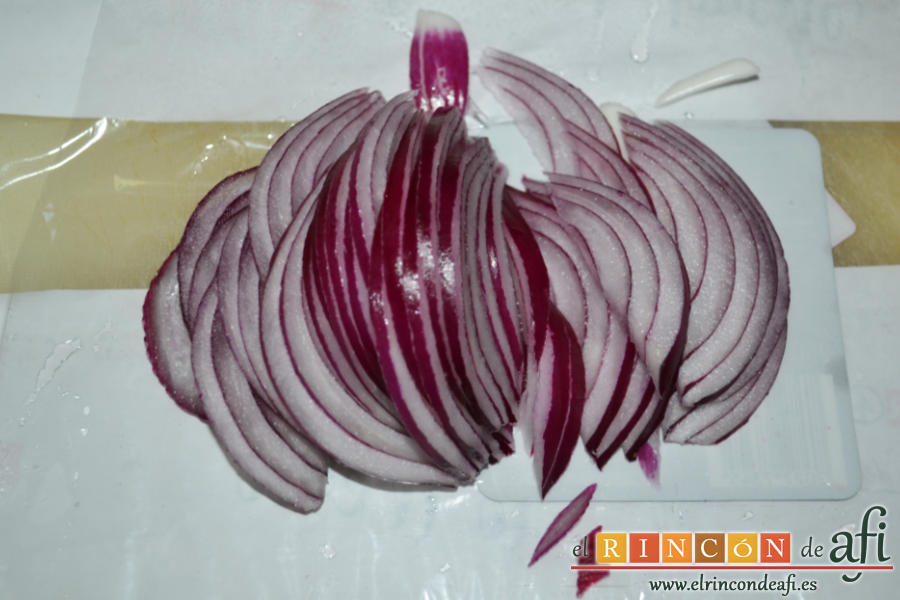 - Aprovechamos para preparar la cobertura. Utilicé una cebolla roja...