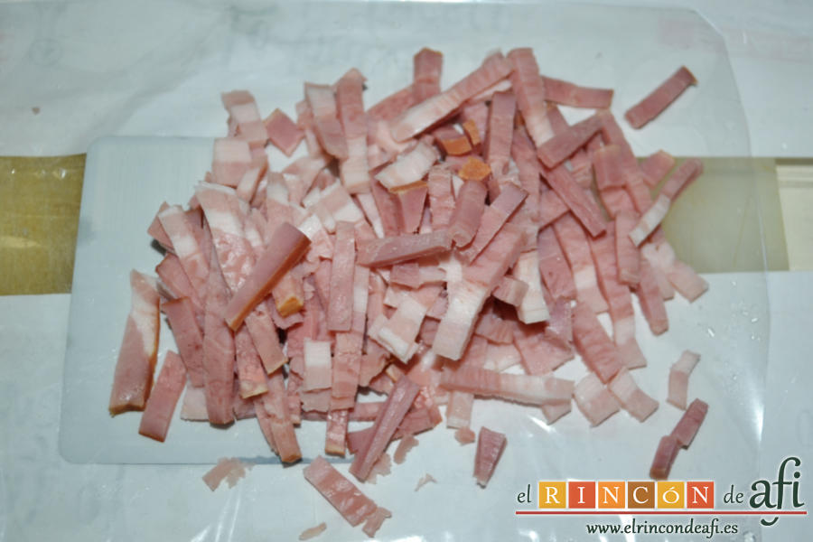 - 100 gramos de panceta ahumada o bacon (para la cobertura)