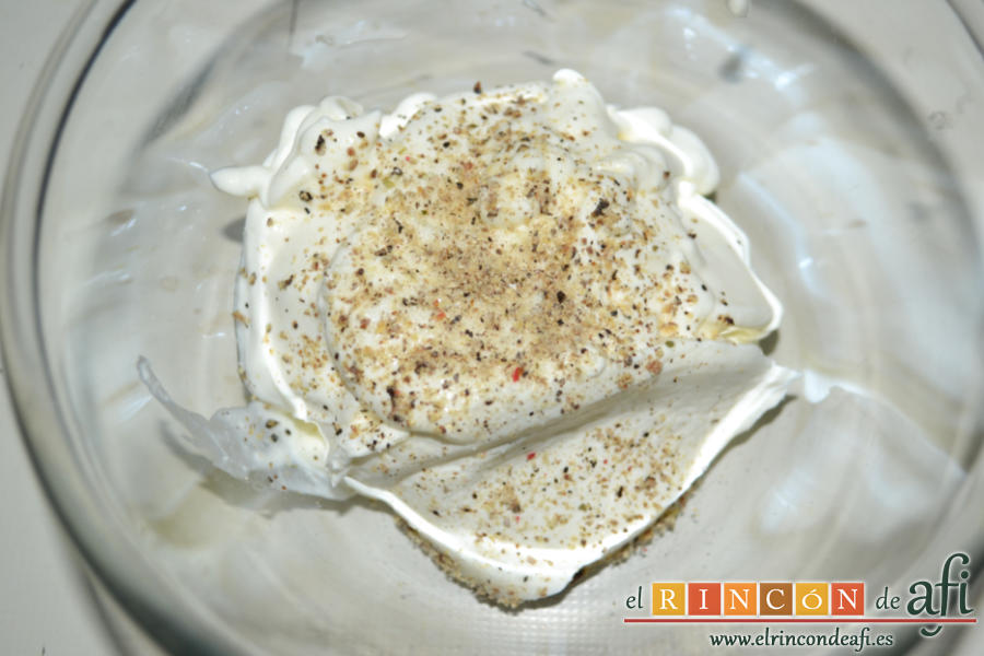 - ...que ponemos en un cuenco pequeño y salpimentamos al gusto...
