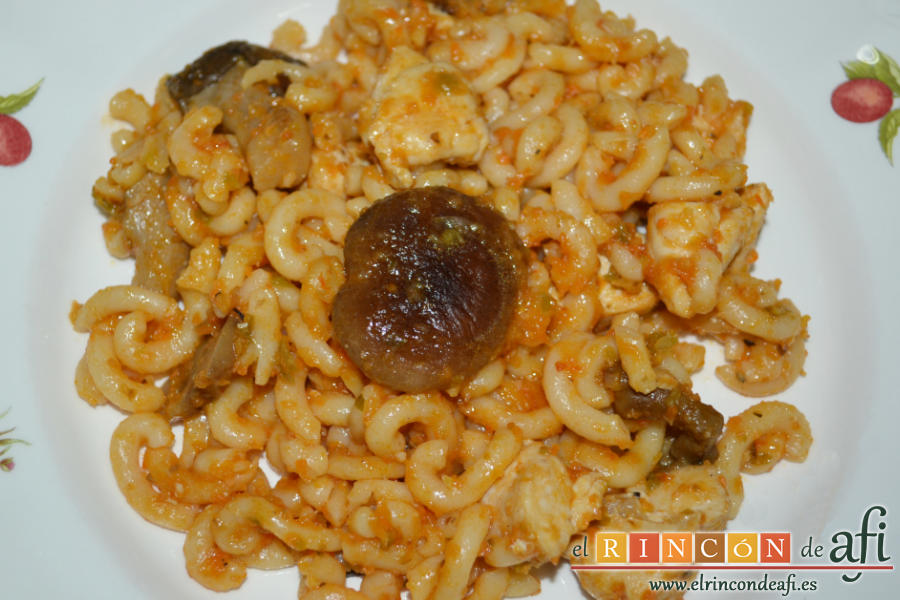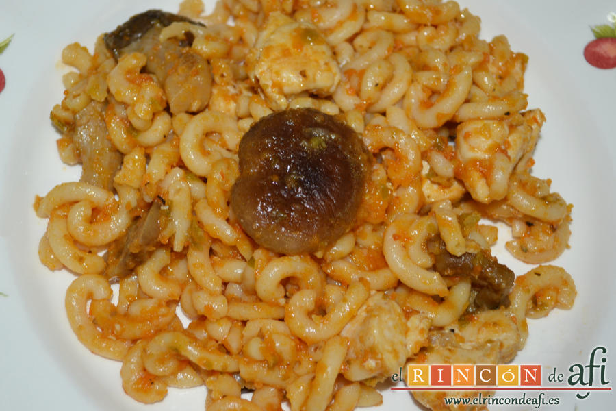 • Tu Fideuá de pollo con setas variadas está lista para comer.