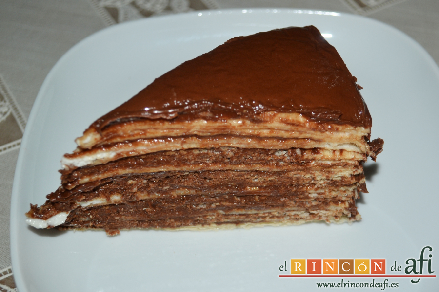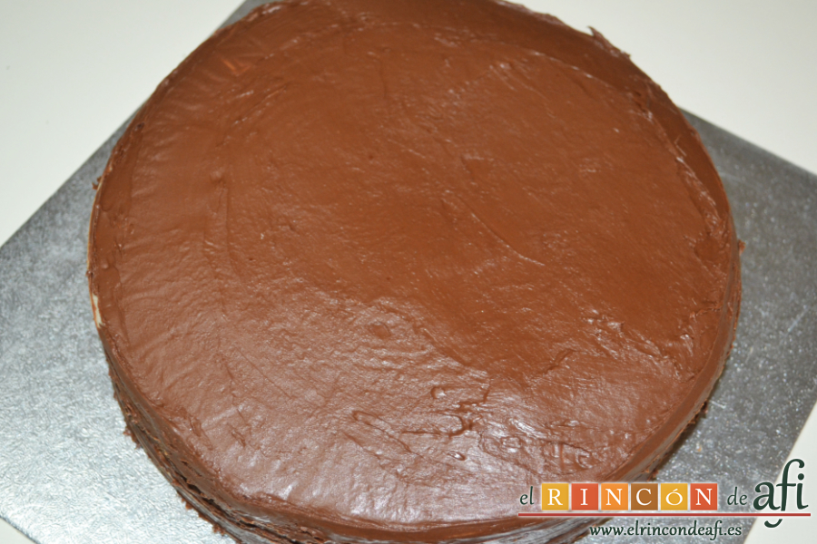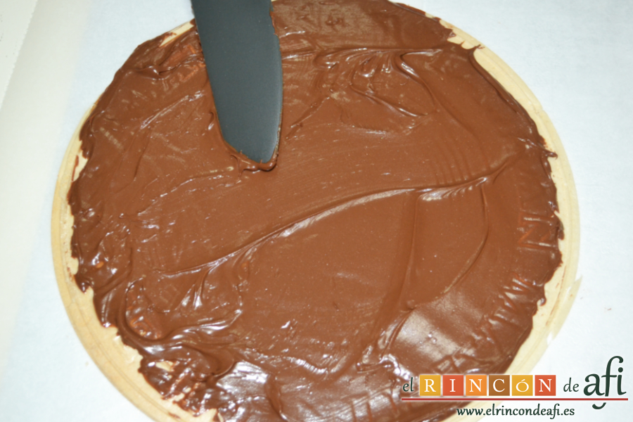 - Así continuamos hasta que terminemos con todas las obleas finalizando con una capa de Nutella para cubrir por completo las obleas, tanto por encima como por el lateral, intentando alisarla bien con ayuda de la espátula.