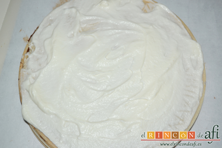 - ...y cada tres capas de Nutella alternamos con una capa de nata montada.